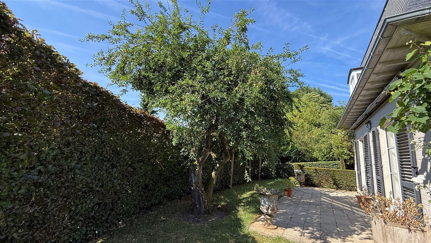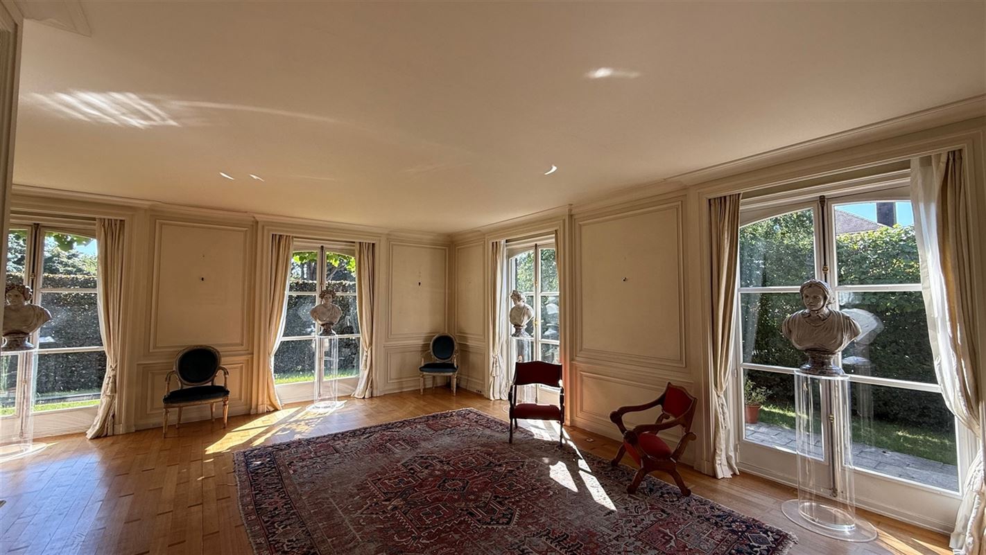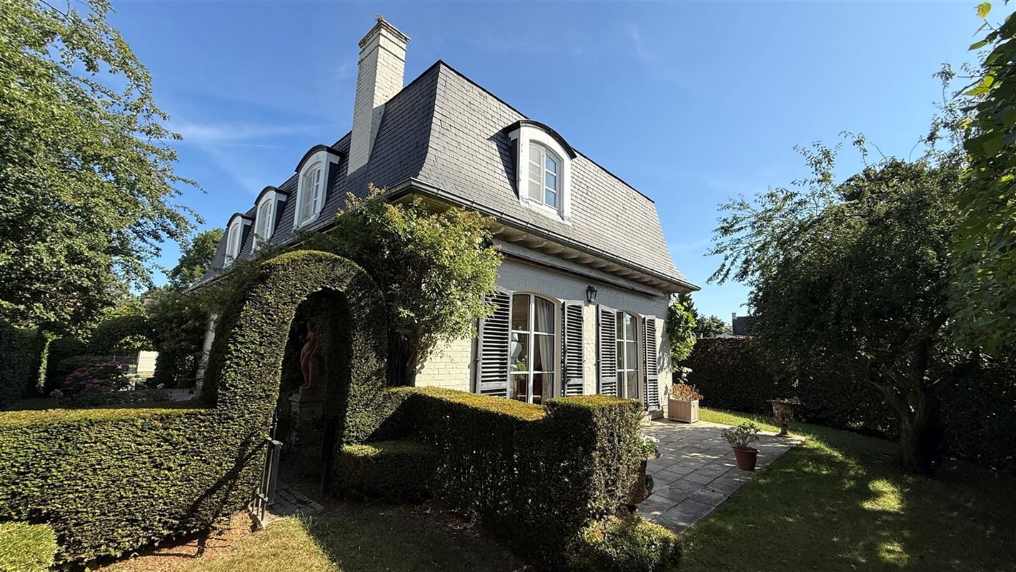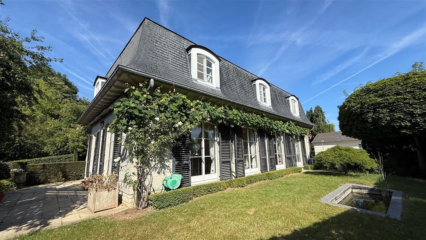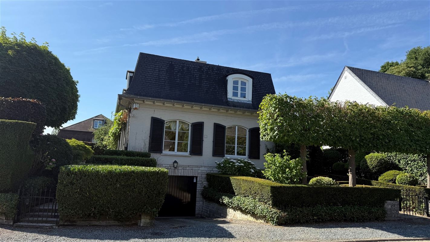 OVERIJSE: In an enclosed area on the edge of the Forêt de Soignes, charming villa of +/- 208 m². The property extends over a nicely wooded plot of +/- 5 ares 50. First floor: spacious entrance hall with checkroom and guest toilet, superb 38 m² living room with open fireplace and parquet flooring, two dining rooms of 14 and 12 m² with marble flooring, super-equipped 11 m² kitchen, south-facing terrace and garden. First floor: Night hall leading to 3 bedrooms (18, 17 and 10 m² ) with parquet flooring and fitted closets, one with private bathroom and toilet. 1 bathroom, toilet, +/- 8 m² office. Basement large 3-car garage, various storage cellars, Buderus gas boiler with 100 L boiler (2015), digital meters, armored door, alarm