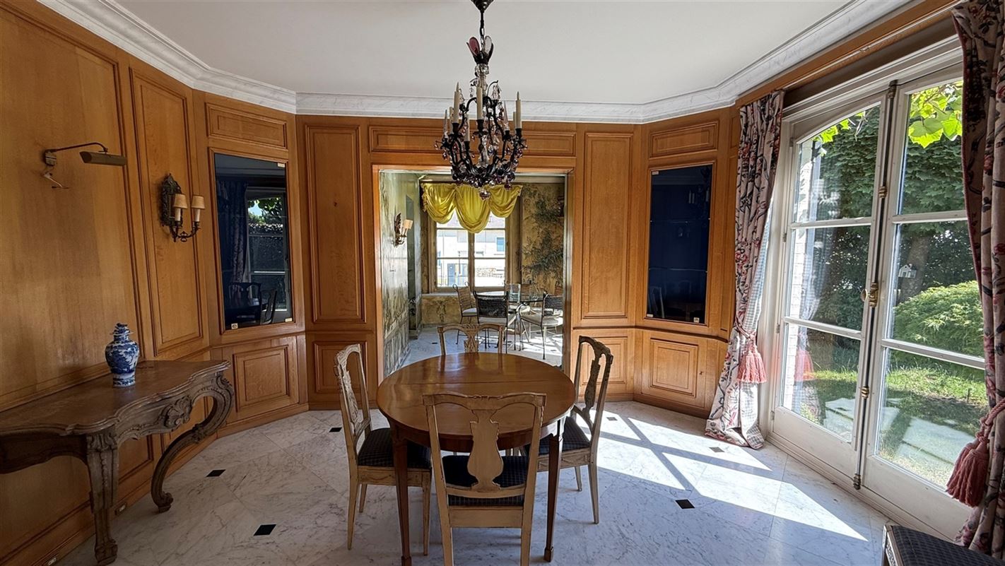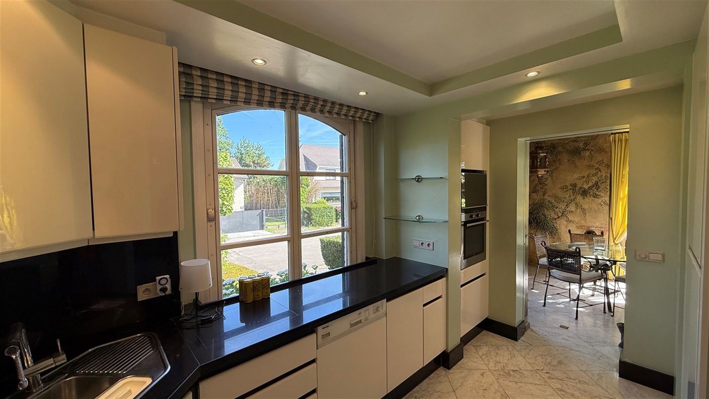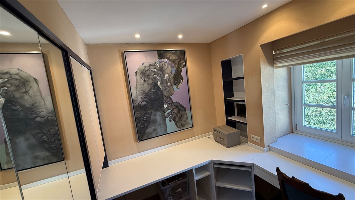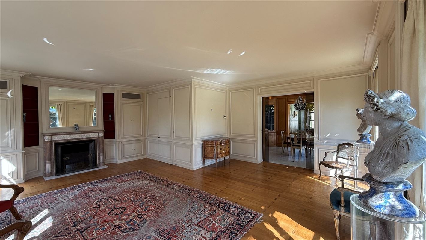OVERIJSE: In an enclosed area on the edge of the Forêt de Soignes, charming villa of +/- 208 m². The property extends over a nicely wooded plot of +/- 5 ares 50. First floor: spacious entrance hall with checkroom and guest toilet, superb 38 m² living room with open fireplace and parquet flooring, two dining rooms of 14 and 12 m² with marble flooring, super-equipped 11 m² kitchen, south-facing terrace and garden. First floor: Night hall leading to 3 bedrooms (18, 17 and 10 m² ) with parquet flooring and fitted closets, one with private bathroom and toilet. 1 bathroom, toilet, +/- 8 m² office. Basement large 3-car garage, various storage cellars, Buderus gas boiler with 100 L boiler (2015), digital meters, armored door, alarm