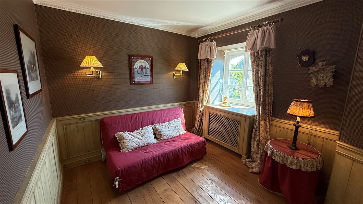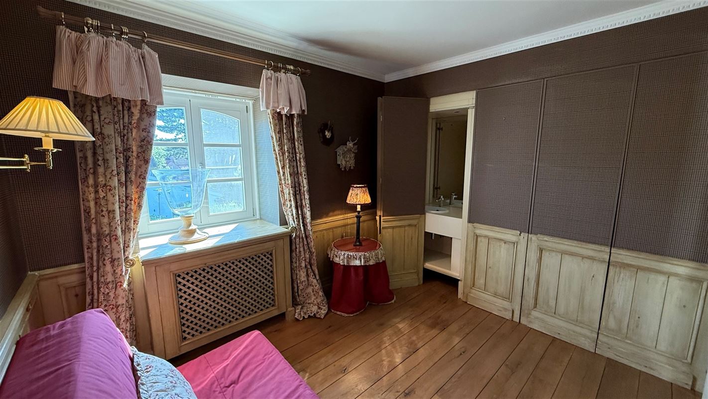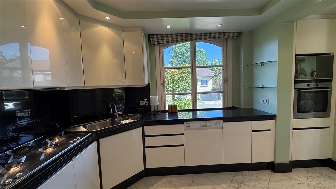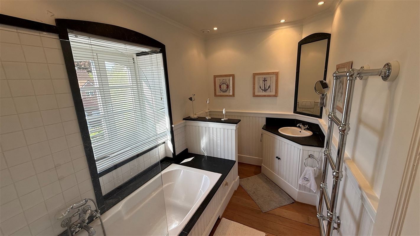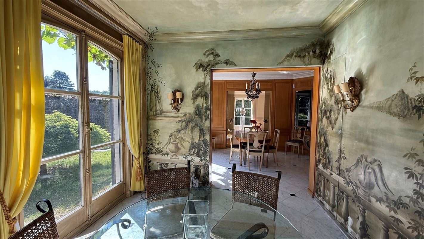 OVERIJSE: In an enclosed area on the edge of the Forêt de Soignes, charming villa of +/- 208 m². The property extends over a nicely wooded plot of +/- 5 ares 50. First floor: spacious entrance hall with checkroom and guest toilet, superb 38 m² living room with open fireplace and parquet flooring, two dining rooms of 14 and 12 m² with marble flooring, super-equipped 11 m² kitchen, south-facing terrace and garden. First floor: Night hall leading to 3 bedrooms (18, 17 and 10 m² ) with parquet flooring and fitted closets, one with private bathroom and toilet. 1 bathroom, toilet, +/- 8 m² office. Basement large 3-car garage, various storage cellars, Buderus gas boiler with 100 L boiler (2015), digital meters, armored door, alarm