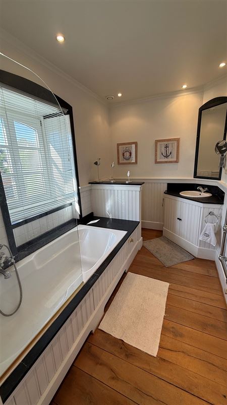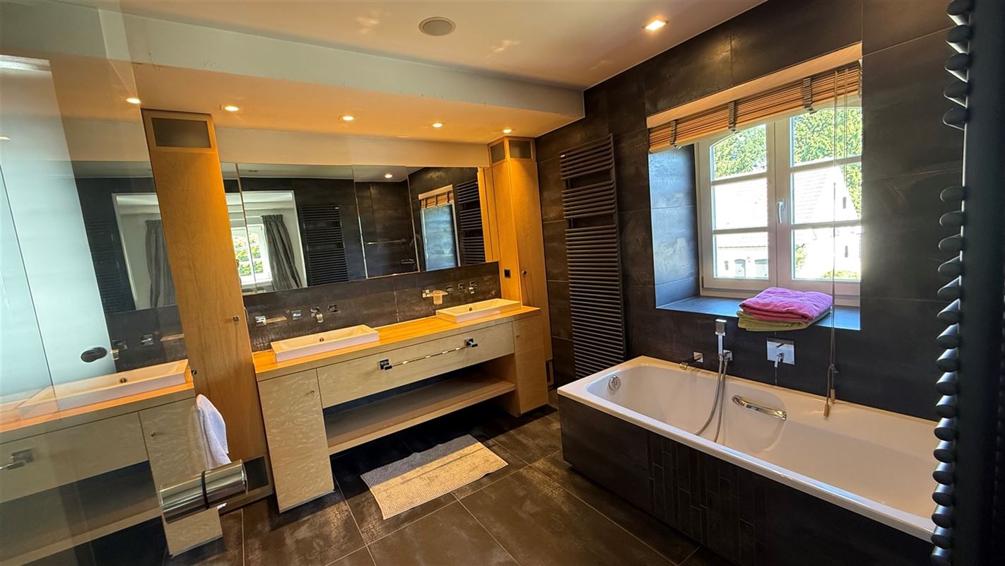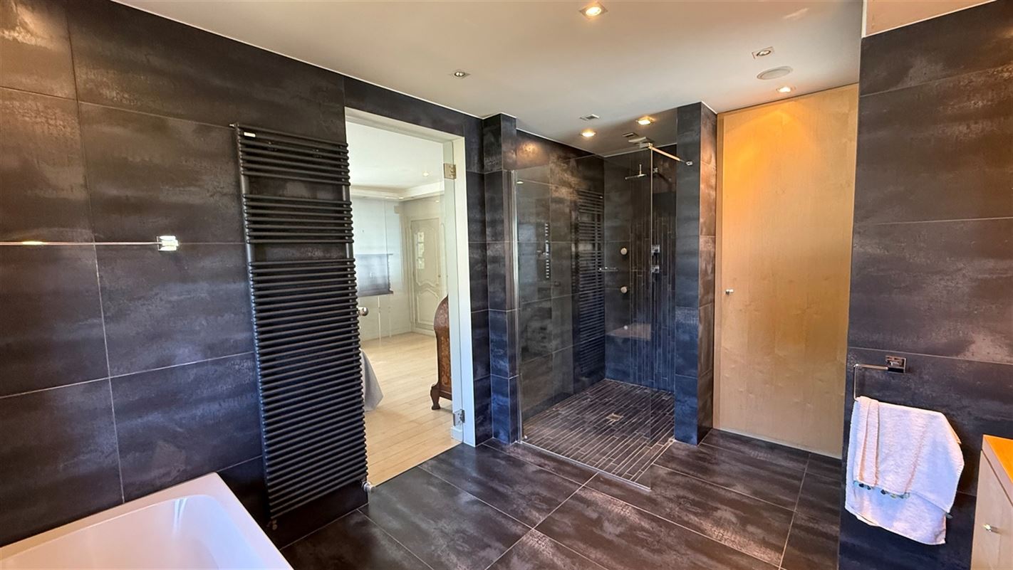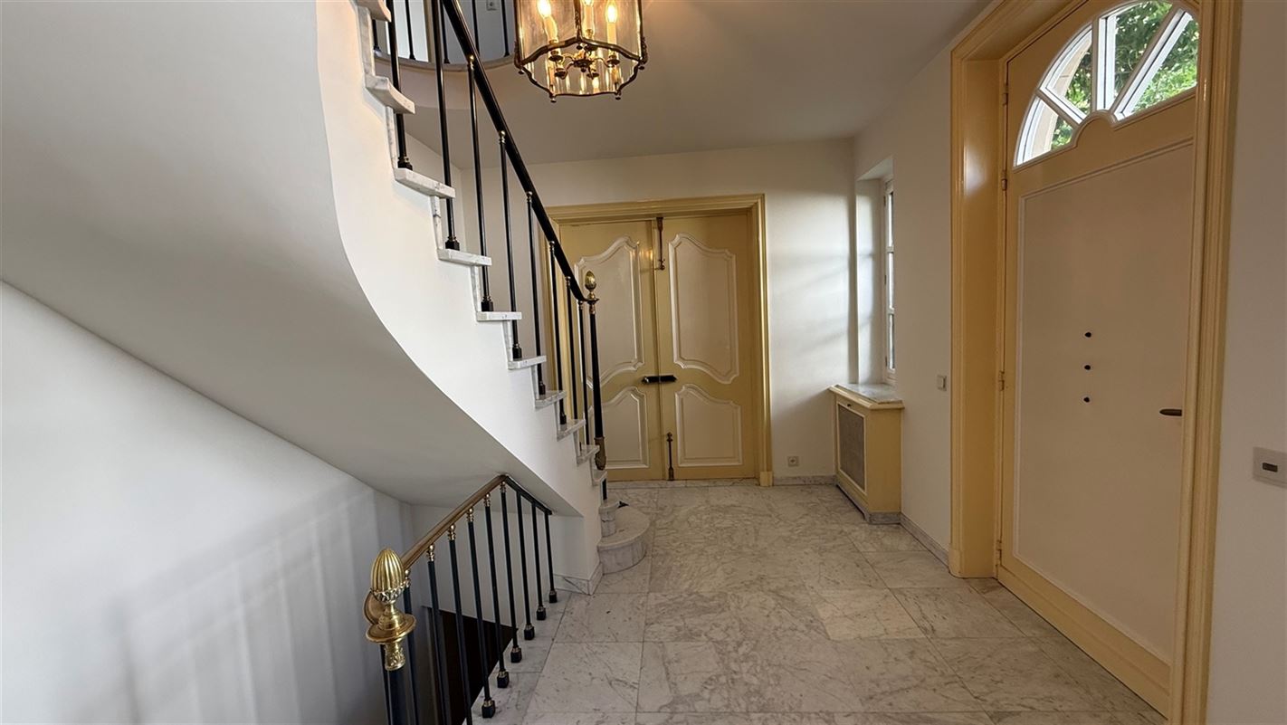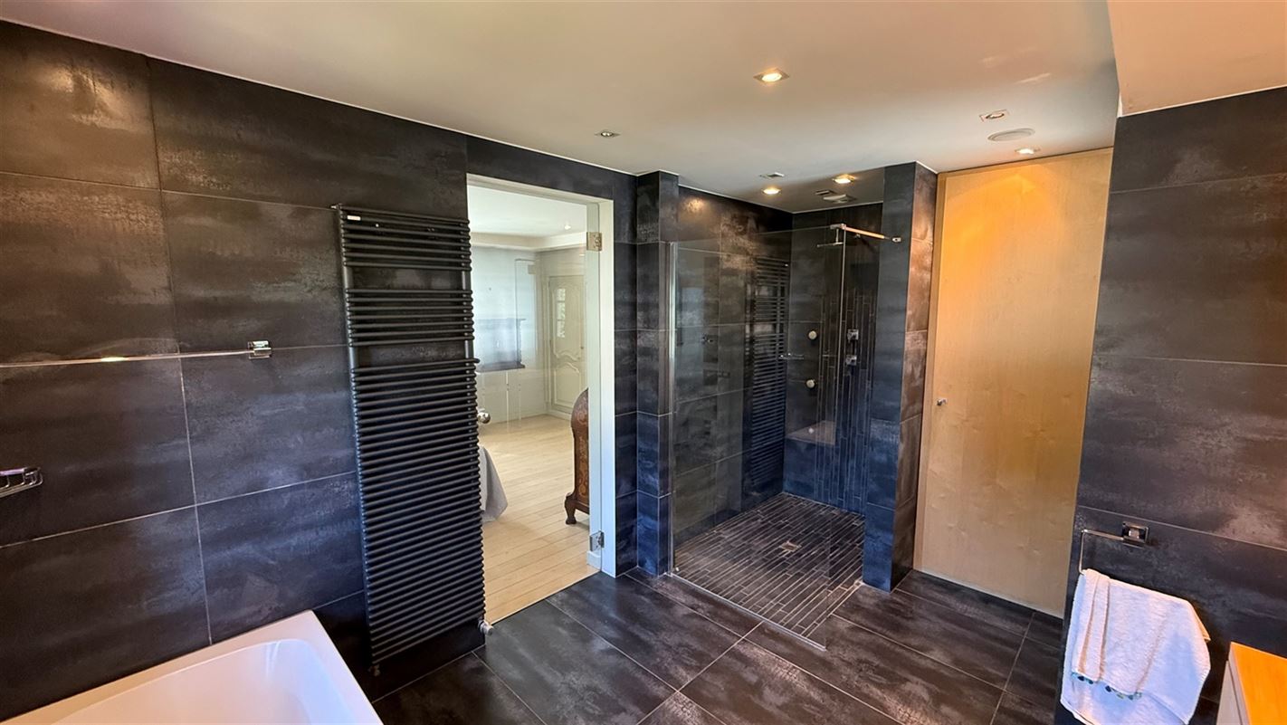OVERIJSE: In an enclosed area on the edge of the Forêt de Soignes, charming villa of +/- 208 m². The property extends over a nicely wooded plot of +/- 5 ares 50. First floor: spacious entrance hall with checkroom and guest toilet, superb 38 m² living room with open fireplace and parquet flooring, two dining rooms of 14 and 12 m² with marble flooring, super-equipped 11 m² kitchen, south-facing terrace and garden. First floor: Night hall leading to 3 bedrooms (18, 17 and 10 m² ) with parquet flooring and fitted closets, one with private bathroom and toilet. 1 bathroom, toilet, +/- 8 m² office. Basement large 3-car garage, various storage cellars, Buderus gas boiler with 100 L boiler (2015), digital meters, armored door, alarm
