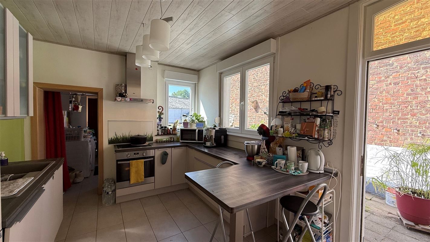 Houdeng-Aimeries: 2-façade brick house on +/- 3.6 ares of land, close to nursery schools and Bracquegnies train station. The house comprises a living room of +/-