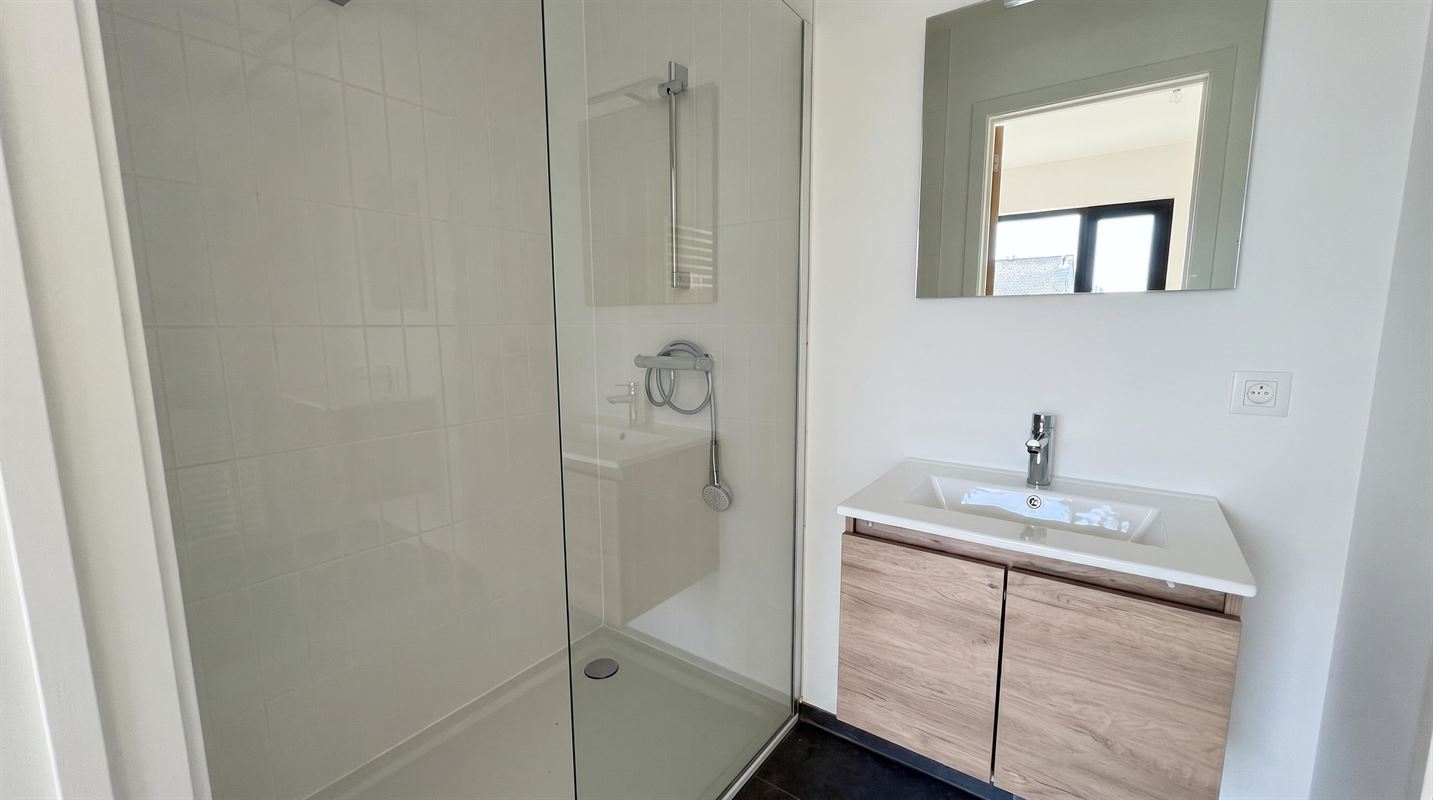 WATERLOO : Proche du centre, superbe appartement neuf situé au 2 ème étage de +/- 55 m², avec un hall d'entrée de +/- 7 m², toilette avec lave-mains, beau salon/salle à manger avec superbe cuisine ouverte de +/- 30 m² donnant accès à une belle terrasse de +/- 7 m², 1 chambre de +/- 13 m², 1 salle de douche Italienne avec lavabo, buanderie, cave et emplacement de parking en sous-sol compris dans le loyer!. Provision de charges ( 80 euros communs) PEB A+ 34 kWh/m².an Système de ventilation double flux. Des luminaires et barres de rideaux seront installés ainsi qu'une mise en peinture de tout l'appartement. porte blindée