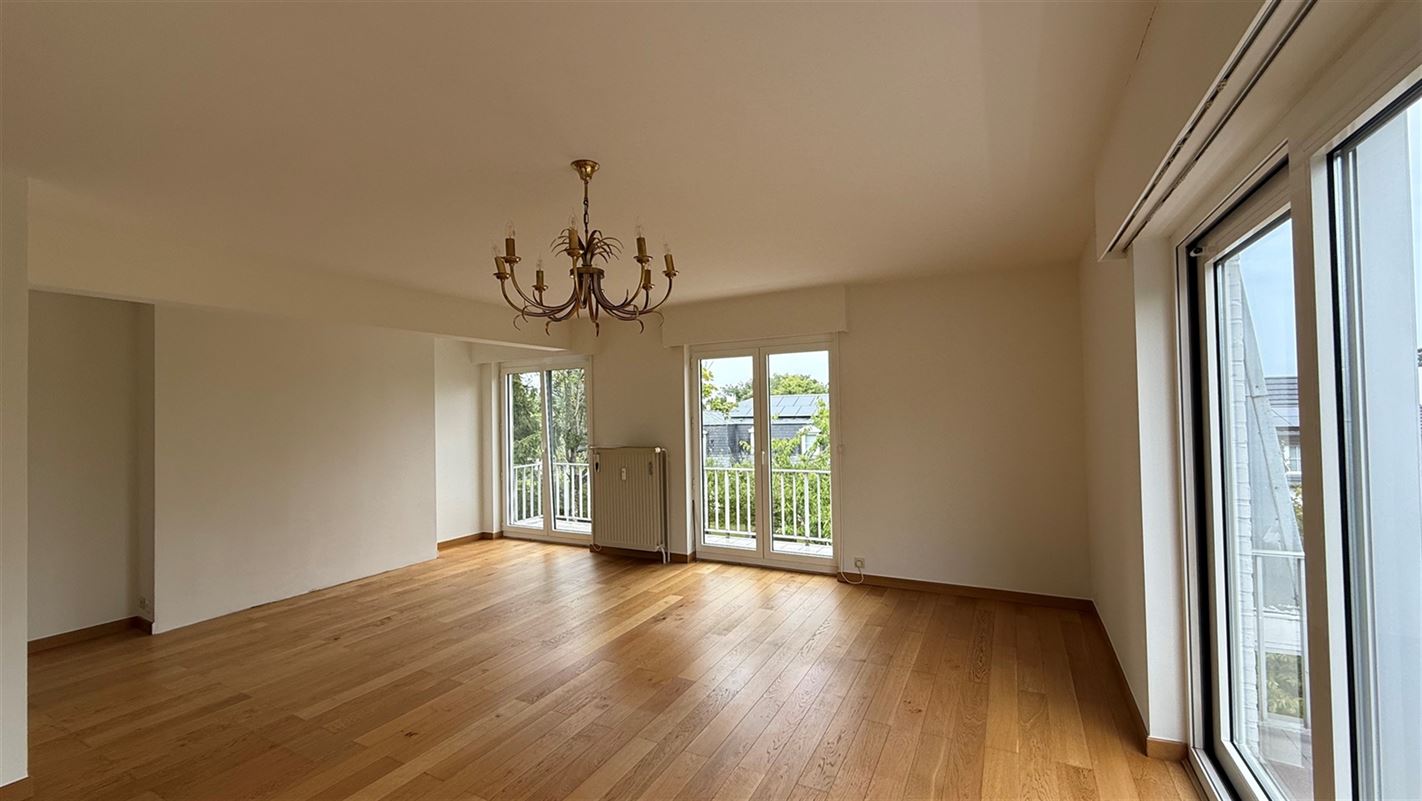 Waterloo centre : bel appartement situé au 2ème et dernier étage d'un immeuble sans ascenseur de 99 m² composé d'un hall d'entrée ( +/- 7 m²) ; d'une toilette avec vestiaire (+/- 3 m²) ; d'un séjour (+/- 34 m²) ; une cuisine (+/- 11 m²) entièrement équipée ( four, lave-vaisselle, frigo, machine à laver); un hall de nuit (+/- 4 m²) ; deux chambres ( +/- 14 et 11 m²) ; une salle de douche à l'italienne (+/- 5 m²) Ascenseur, double vitrage pvc et bois chaudière , PEB ( D) 287 kwh/m² .an - 28 281 kwh/an N° 20250806019522. Porte blindée, volets électriques, double balcon, 1 emplacement de parking en sous-sol, cave n°1; double vitrage pvc blanc, provision de charges 170€ (entretien des communs, chauffage, eau). La superficie n'est mentionnée qu'à titre indicatif.
