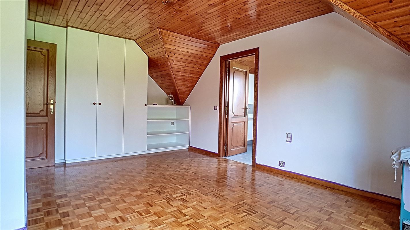 Quartier calme et résidentiel, excellente villa (2000) idéale pour une grande famille. En parfait état elle offre un hall avec WC, vestiaire. Au rez, bureau, salon avec feu à cassette, véranda, grande cuisine super équipée, office, garage 2 voitures avec portes automatiques. A l'étage 5 belles chambres avec parquet, wc, 2 salles de bains dont une avec douche et WC.Nombreux placards.Grenier isolé.PEB C n° 20130128000129677900000020 - 236Kwh/an/m²-